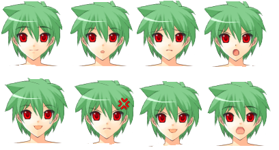 Mit den Face Maker (Compulsory Hero) erstellten Face von einen Typ mit grünen Haaren.