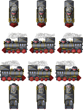 Eine Dampflok, die als Charset verwendet wird. Sie ist kompatibel zu den RTP und Mack Schienen